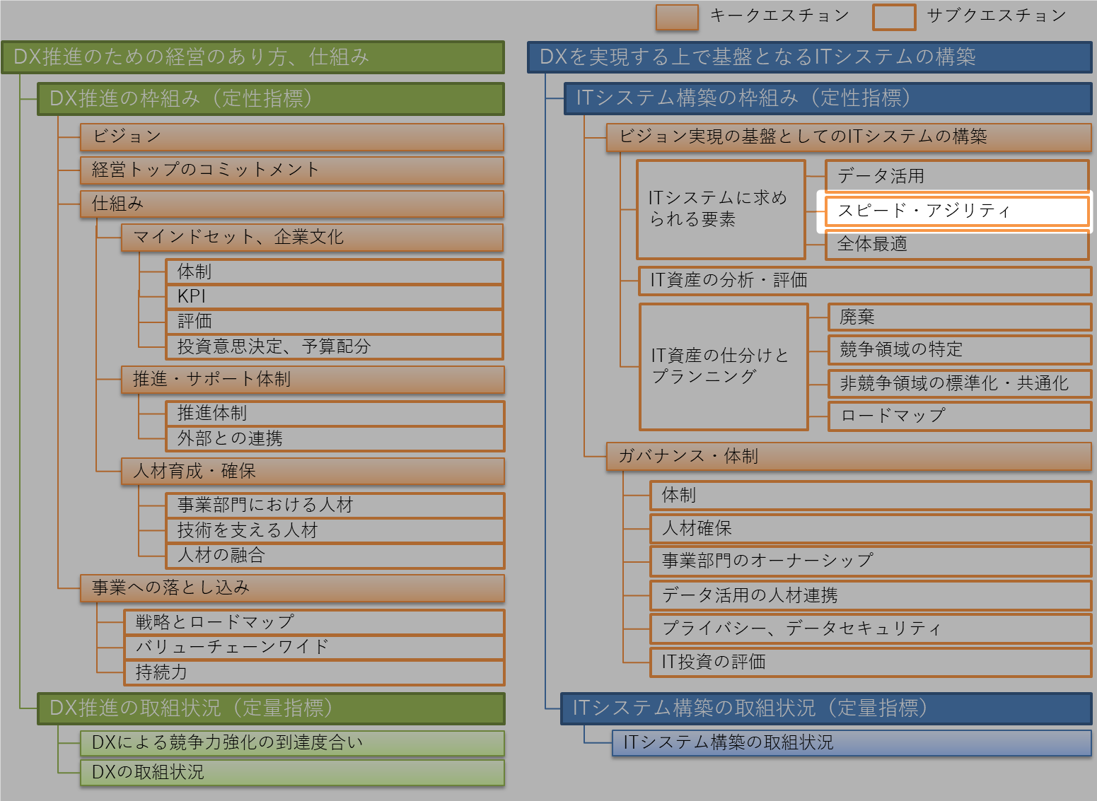 | レベル3 | システムの全体構成が可視化されており、ボトルネックをすべて解消したため、全社的な迅速な対応が可能となっている。 |